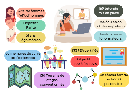 Depuis 2020, 133 certifié-e-s sur le parcours FPEA, depuis 2020. Et 53 sur le parcours AP-HP depuis 2018.